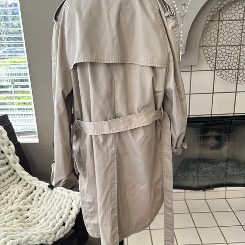 Experience timeless elegance with this London Fog trench coat in a sophisticated tan hue. Crafted from water-resistant material, it features a belted waist and a structured silhouette, making it a perfect addition to your outerwear collection.
