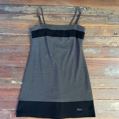 This rare pre-Target Mossimo piece represents the original streetwear roots of the brand, made in the USA and designed with a true late-90s/early-2000s silhouette. The sporty mini dress features soft stretch knit fabric, a built-in bra shelf, and a gray-and-black colorblock design. The look is completed with Mossimoβs signature embroidered logo at the hem, confirming its early archive authenticity.