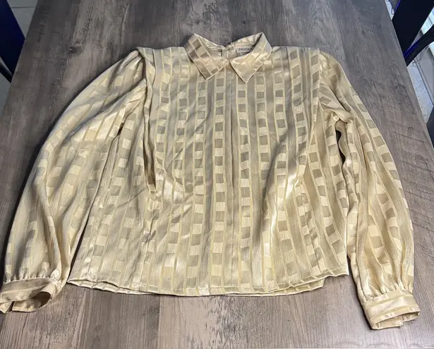 Vintage NICOLA Made in the USA Gold Checkered Blouse with Shoulder Pads Size 8 - $45 - From Katrina