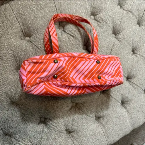 Vintage Old Navy Chevron Patterned Bag. Features wooden tops holding handles with snap closure. Inte... Show more
