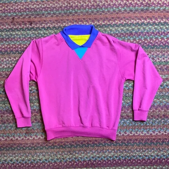 VINTAGE PINK COLOR BLOCK PULLOVER SWEATER PREPPY - $10 - From Sausy