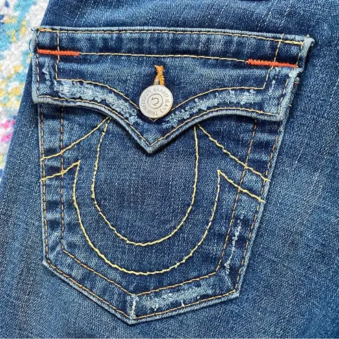 Vintage True Religion Flare/Boot Cut Distressed Low Rise Joey Jeans Size 27 Waist 14” Rise 7” Ins... Show more