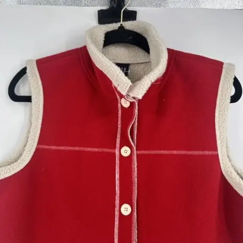 Vintage Y2K Gap Womens Faux Shearling Red Fleece Vest Large Layering Button Down Smoke free home... Show more