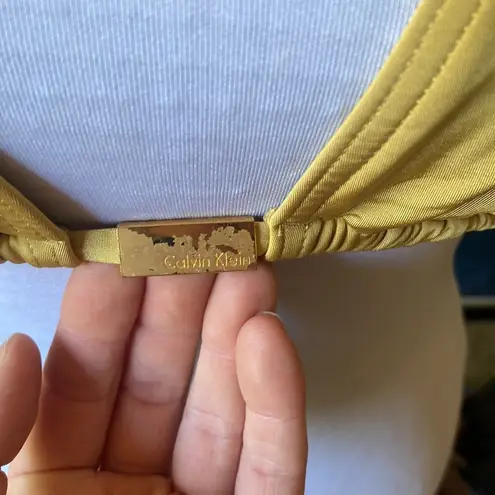 y2k Calvin Klein Swimwear gold string bikini top. Size 8. Gold logo metal hardware at bust and on en... Show more