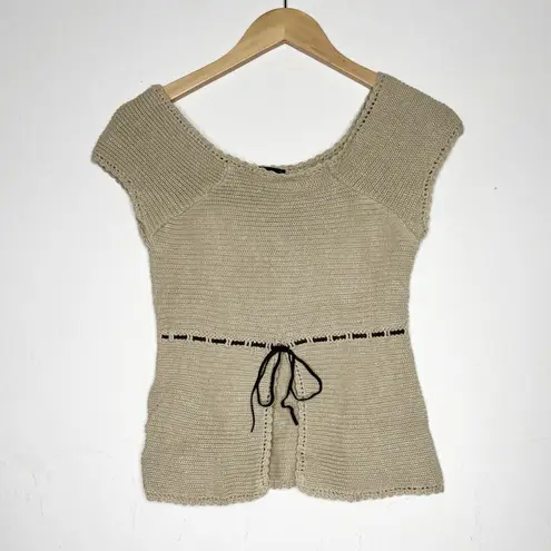 Vintage Y2K No Boundaries 2000’s Knit Cap Sleeve Open Slit Front Tie Bow babydoll Top Juniors 7/9... Show more