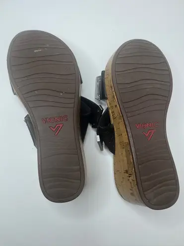 Title: Vionic Black Pepper Leather Wedge Sandals Size 7 – 3” Heel, Pre-Loved, Chic Comfort Listing... Show more