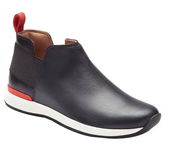 The Vionic Cece Black Leather Slip-On Sneaker Bootie is a stylish and comfortable ankle boot designe... Show more