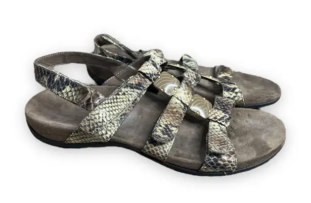 These vionic rest amber sandal have three adjustable velcro straps over the top of your foot and aro... Show more