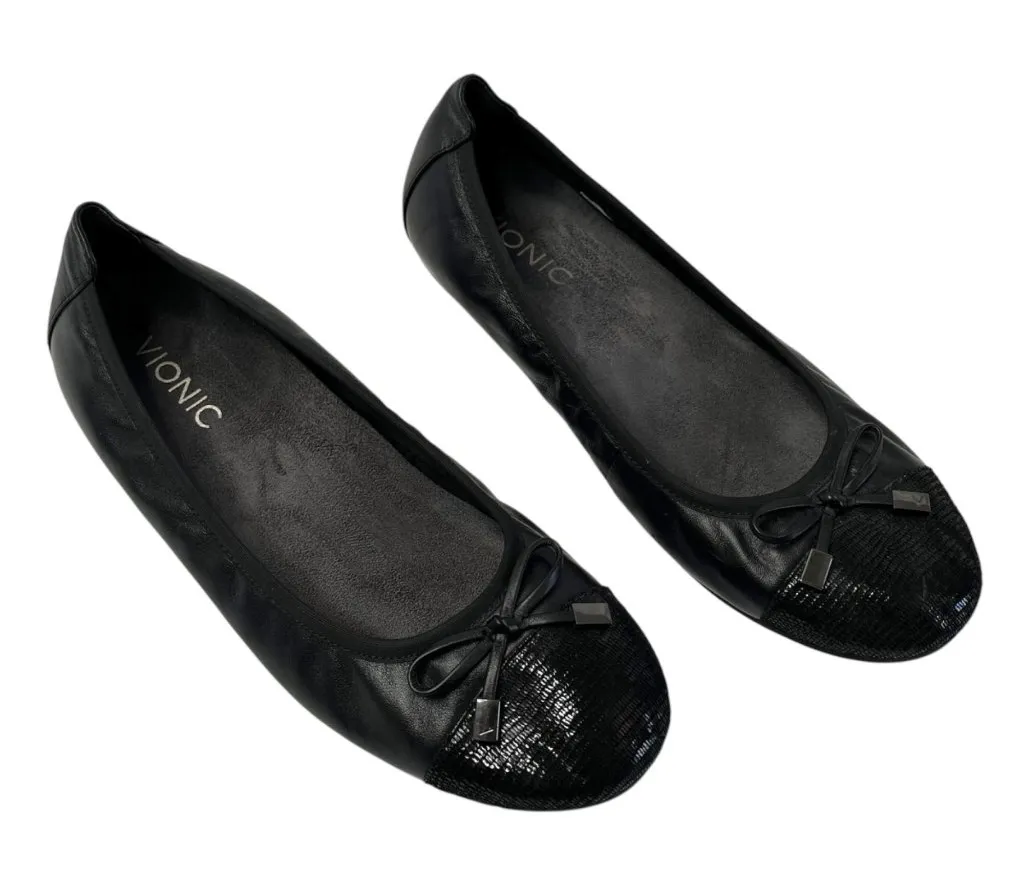 Great preloved condition Vionic Womens Black Minna Leather Sequin Cap Toe Ballet Bow Flats size 8 or... Show more
