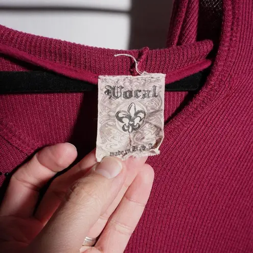 Vocal Y2K Fleur De Lis Crystal Embellished Red Burgundy Hooded Ribbed Top 00s M USA Made long sleeve... Show more