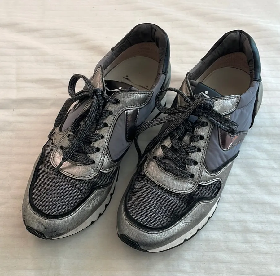 Signs of wear- marks on leather, rub/wear on the textile. See pictures-specifically last several pictures Soles are in great condition Rubber sole Upper- leather nylon textile See Last picture for voile Blanche size chart