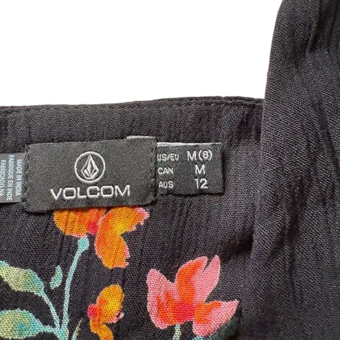 Keywords: Volcom, floral dress, embroidered dress, sleeveless dress, mini dress, v neck dress, bohemian dress, summer dress, casual dress, womens dress, black dress, floral print, spaghetti strap dress