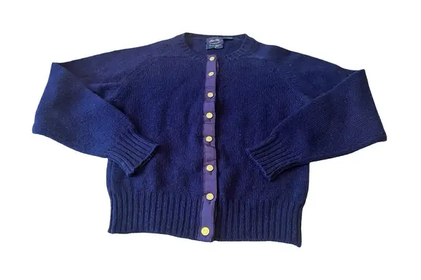 Vtg Allen Solly Womans S Navy Shetland Wool Button Up Cardigan Sweater Scotland Blue - $30 - From Sam