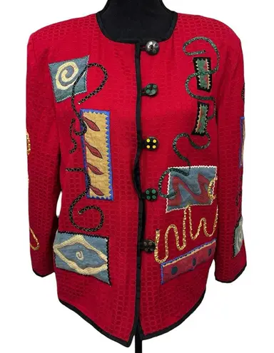 Jacket is in good preowned vintage condition. No holes. There are some areas at the stitching where you can see wear. The top button & bottom button is missing the color. Jacket is fully lined. Shoulder pads included. Please see all photos. Message me with questions Measurements Chest armpit to armpit 21.5" Length (top of shoulder to hem) 25.5"
