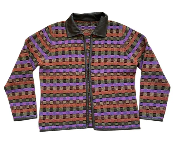 VTG Sigrid Olsen Wool Knit Jacket Cardigan Leather Colorful Women APPROX Medium Green - $30 - From Allison