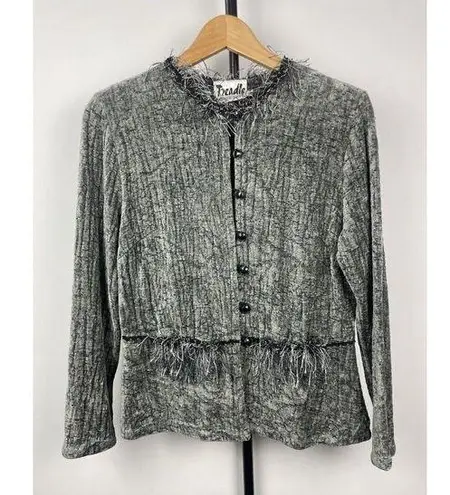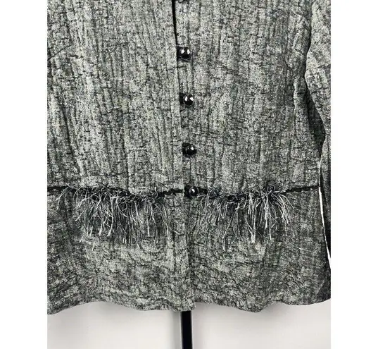 Vtg Treadle Design Room Gray Art To Wear Fringe Neckline Button Up Blouse Size M Size M - $22 - From Alyssa