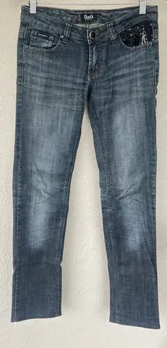 VTG Y2K D&G Dolce & Gabbana Sequin Pocket Blue Distressed Jeans Size 27 Glam - $210 - From R