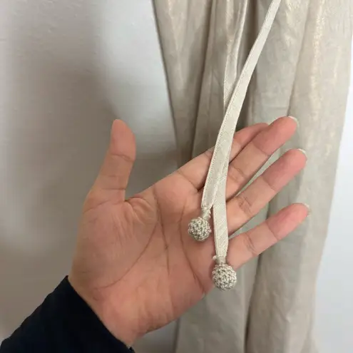 Dress Linen Lace trims Crossover straps Slips on Lightweight, non-stretchy fabric Dry clean Size M New with tags Model picture added to show you how it fits but this dress is GOLD