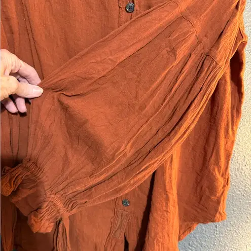 Chic terracotta button-up shirt. Ideal for casual outings. Size Small very oversized Pit to pit 25”
