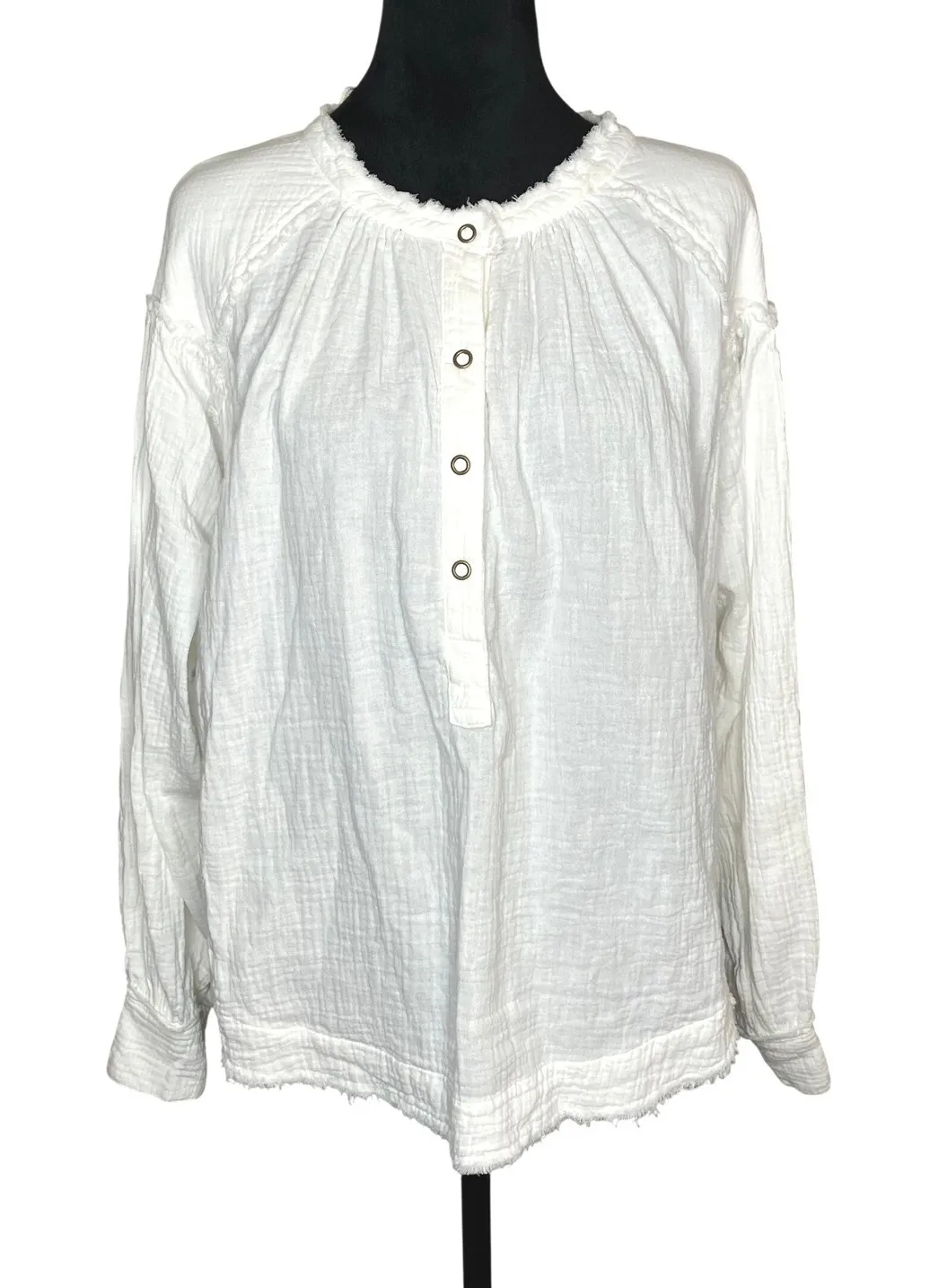 We The Free Collarless Oversized Button Front Cotton Blouse Ivory Small NWOT (sku#783) 100% cotton C... Show more