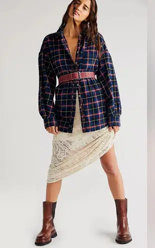 red and blue. Size small. Cool and classic, this button-front top is featured in an oversized, rel... Show more