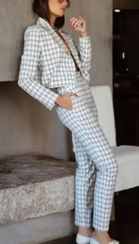 Danielle Bernstein Plaid Cropped Blazer, pants AND shorts Set White - $71 - From Nina