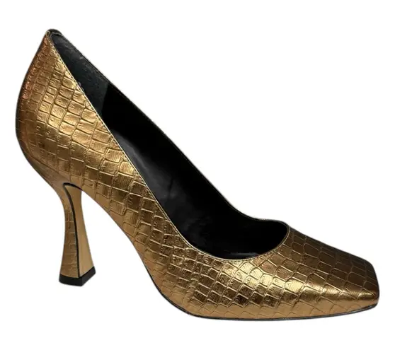 Elegant Werner heels in metallic bronze with croc-embossed texture and a modern square toe. Sleek si... Show more