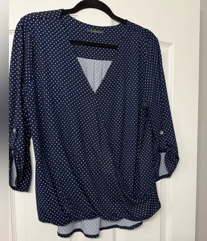 West Kei Blue Polka Dot Wrap Front Roll Tab Sleeve Sz XL Womens High-low Blouse - $26 - From Jennifer