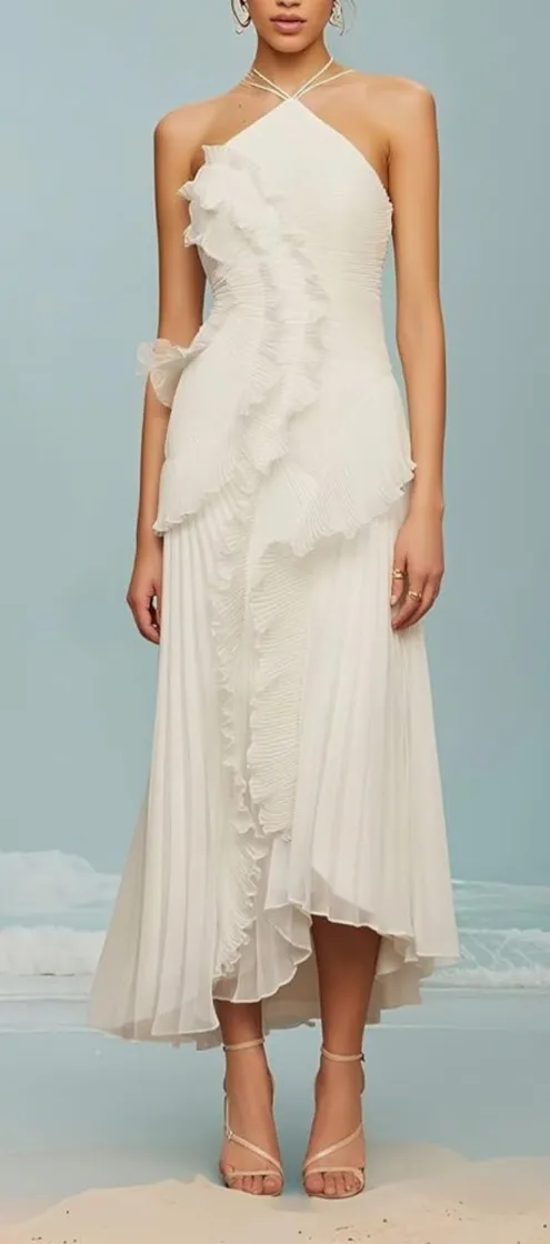 White Halter Neck Bridal Occasion dress Size L - $13 - From Bekah