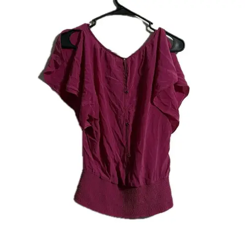 This stunning red top showcases a beautiful flutter sleeve design and a flattering ruched effect at... Show more