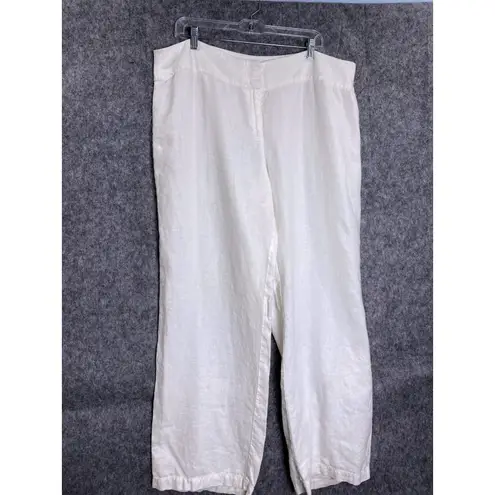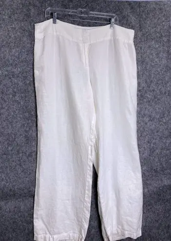 Eileen Fisher 100% linen wide leg pants in crisp white. Designed with a flat front waistband, side p... Show more
