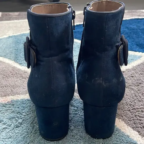 Good preloved condition White Mountain Blue Ankle Boots -Blue suede shoes? Almost! Faux suede ankle boots -Gorgeous blue ankle boots -Faux suede material looks like the real thing -Side zip -Adjustable buckle -The color is amazing -2.5” block heel -Cushioned insole -While overall great condition, there are some water marks/stains here and there but this does not affect overall integrity Size 9.5
