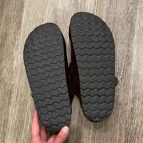 Cliffs by white mountain clogs in dark brown suede with adjustable buckle strap Size 6.5 wide Similar style to Birkenstock Barely any wear. Excellent condition. Tags birks Boston hippie hipster granola girl clog trendy grandmacore boho retro