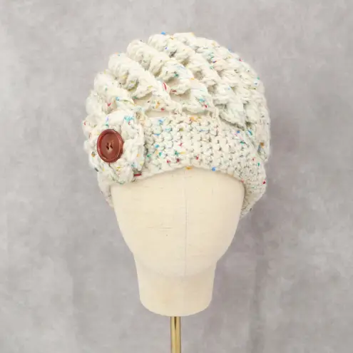 White Multi Cable Knit Flower Button Y2K Vintage Beanie Cap Hat - $33 - From LimenDime