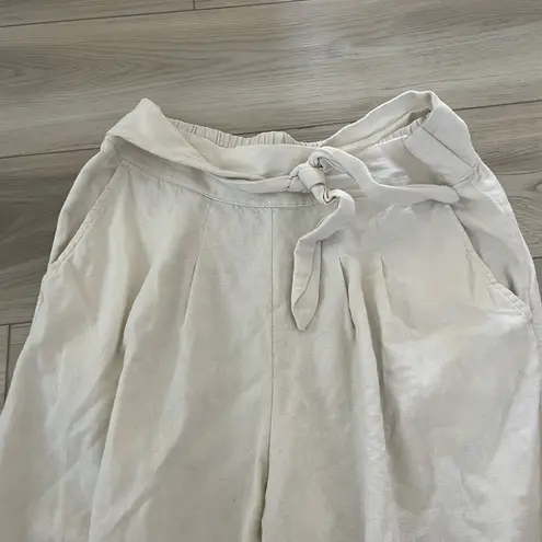 Who What Wear Womens Off White Linen Rayon Paperbag Tie Waist Pants Size Medium