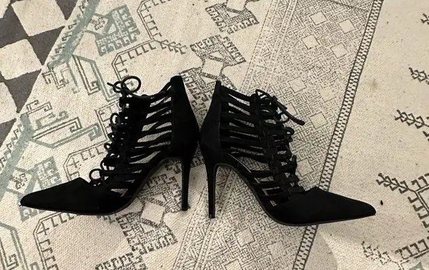 Black lace up high heels closed toe Size: 7 Brand: wild diva lounge Color: black #heels #glam... Show more