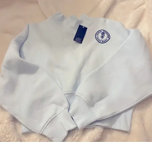 Wild Fable mock turtleneck sweatshirt in light aqua blue, size XS. Features a graphic design, drop-s... Show more