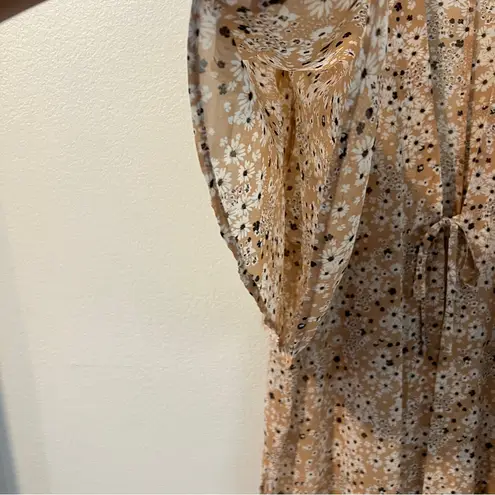 Wild Fable Sheer Chiffon Floral Tab White Flutter Bell Sleeve Tie Front Kimono ONE SIZE Chic beig... Show more