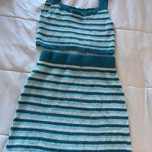 Chic knit set with teal and cream stripes. Features a cozy design. Size small Wild fable knit set... Show more