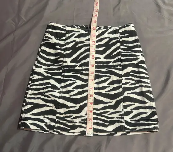 Zebra print mini skirt. Tagged as a 00 but can fit up to a size 2. It's pretty stretchy. 24 inches... Show more
