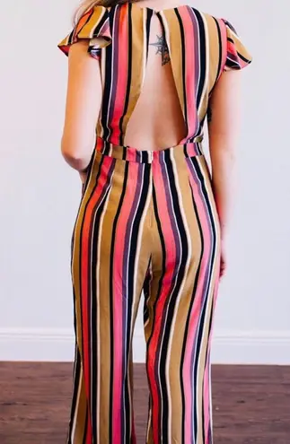 Brand new, never worn. Super cute Wild Honey jumpsuit. Low v in the front and open back. Can be worn... Show more