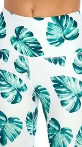WILDFOX Banana Leaf High Waist Leggings Size small White with green leaves all over 7/8 length Wide... Show more