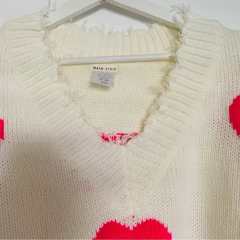 Main Strip Boutique Off White Neon Pink Heart Print V-Neck Distressed Ripped Knit Sweater Size: S (o... Show more