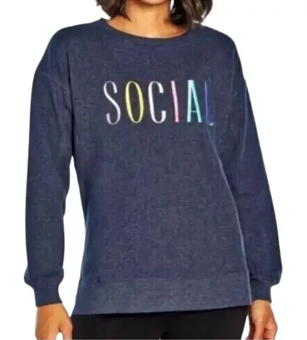 New with tags Chic navy sweatshirt with colorful 'Social' embroidered statement. Soft and comfor... Show more
