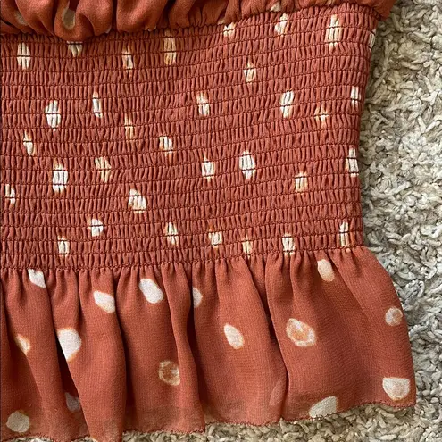 Wilfred Rust Orange Creme Polka Dot Smocked Cropped Tank Top - Size Small Features: Smocked wais... Show more