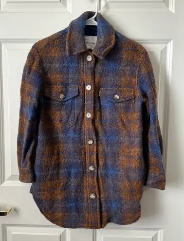 In great condition no holes or stains Wilfred Free Women’s The Ganna Utility Plaid Wool Shirt Jacke... Show more