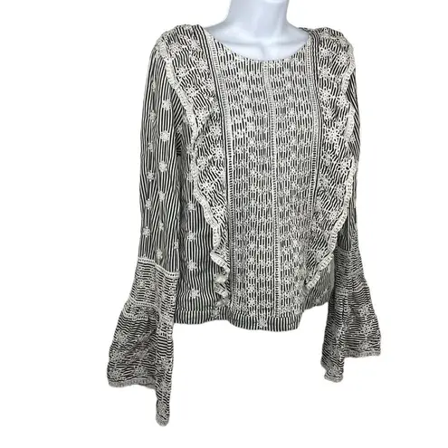 Willow & Clay Embroidered high neck bell sleeves ruffle detailed top size Medium Gray - $30 - From Thrifty