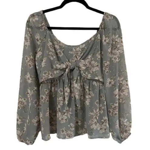 Willow Root Blue floral chifon 3/4 sleeve blouse with tie front detail #floral #blouse Size S Grayi... Show more