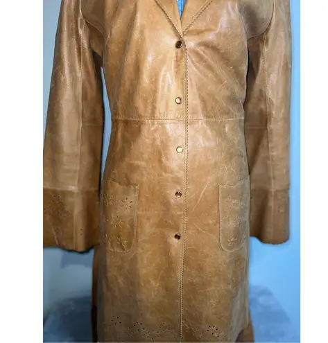 Wilsons Leather Duster Caramel Tan Trench Eyelet 70s Pearl Snaps Coat Size L - $143 - From Rachel