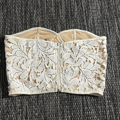 Flat measurements Pit to pit- 14” Length- 9” Note: has zipper on the back Chic cream lace bustier... Show more